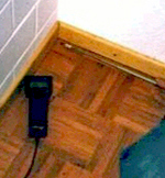 Durch die Dehnungsfuge am Rand des Fußboden, oder manchmal sogar durch die Fugen in einer darunter befindlichen Wärmedämmung, breitet sich die Luftströmung auch bis in das innere des Raumes aus.